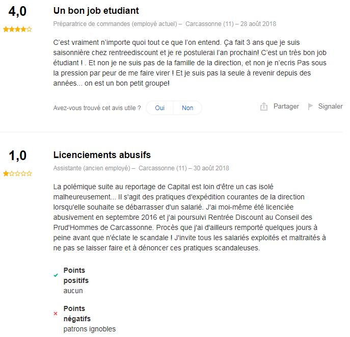 ![]() Et le rédacteur en chef de Capital : Citation : « La séquence en question est un plan séquence, il n’y a pas eu de montage, donc, ça s’est passé exactement comme ça. Nous n’avons absolument rien à nous reprocher. » Avant d’ajouter : « C’est un patron sous pression, qui doit faire en deux mois le chiffre d’affaires d’une année. Donc on peut comprendre que, parfois, cette pression s’exprime. » Via 20minutes.fr Et les avis des salariés : Soit c'est nickel, soit c'est affreux. Va te faire un avis avec ca ![]() Via indeed.fr
