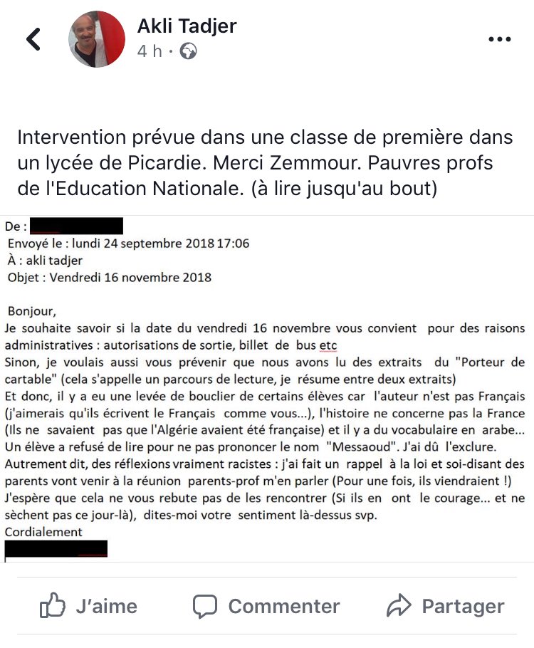 "Français de souche"... Sorti de la bouche de quelqu'un qui porte un nom de famille berbère algérien, ça me fait bien rire. Parce que sinon ça me ferait pleurer de désespoir cette idéologie.