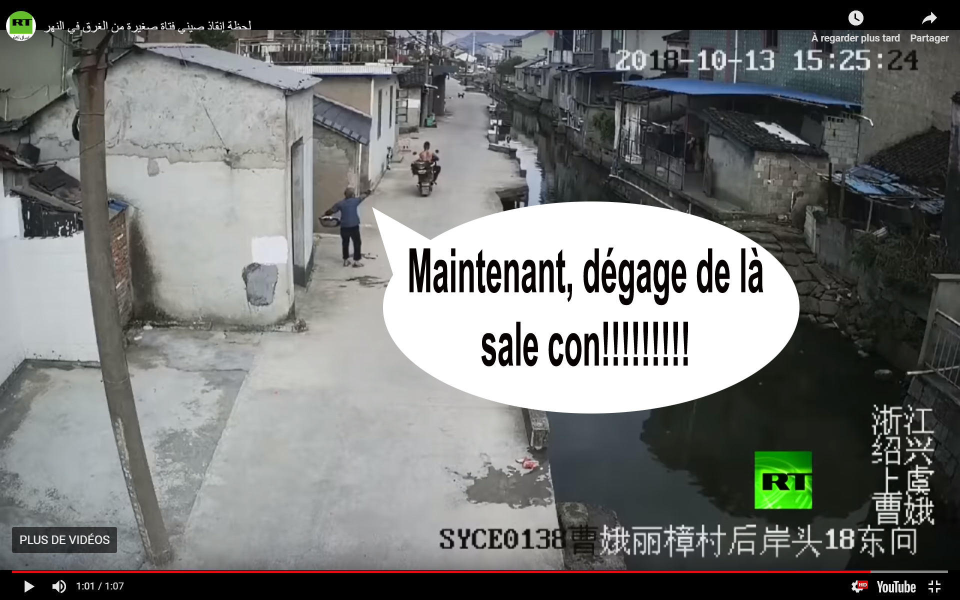 Chine : Une fimme tombe dans l'eau et se noie, un homme la sauve