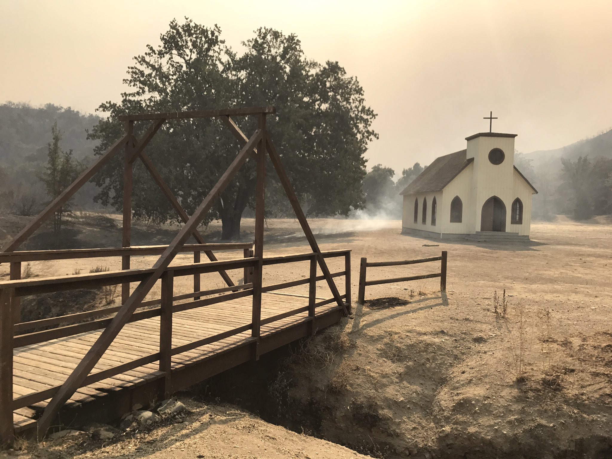 "Nous sommes au regret de vous informer que "Woosley Fire" a brûlé "Western Town" à Paramout Ranch. Nous n'avons pas de détails ni de photos, mais nous savons que des structures ont brûlé"