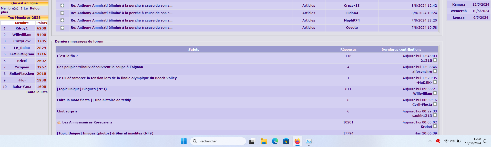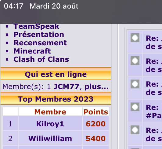 ![]() Août 2024 : Kilroy1 : 30 points Le_relou : 15 points