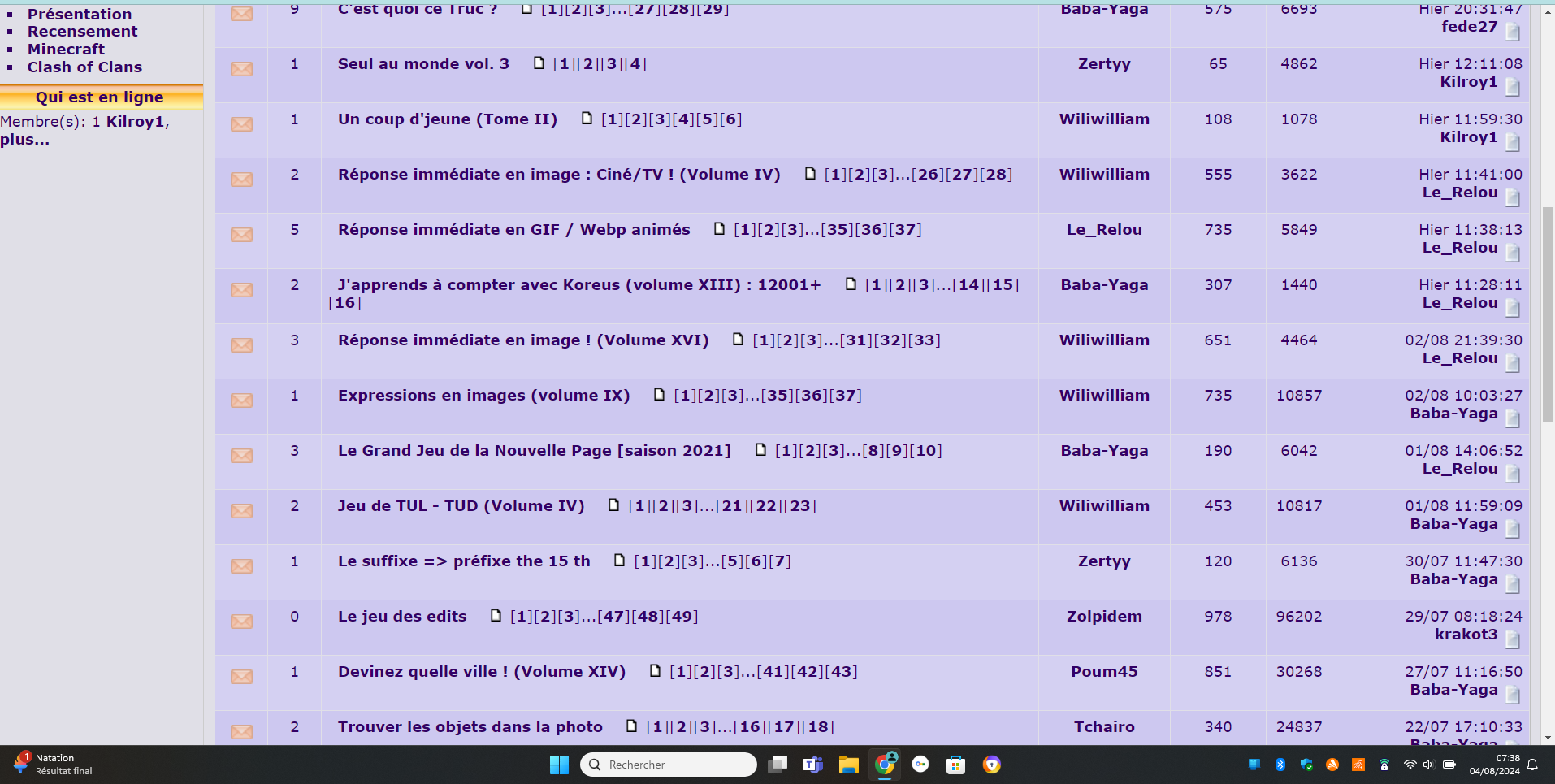 ![]() Juillet 2024 : @Le_Relou :15 points @JCM77 : 15 points