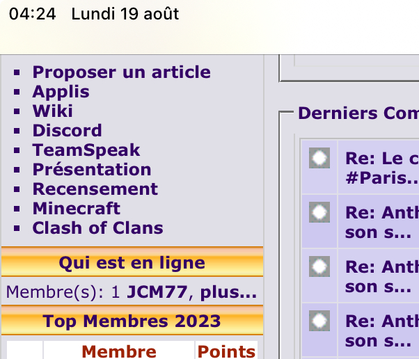![]() Août 2024 : @JCM77 : 45 points @Kilroy1 : 30 points @Le_Relou : 15 points