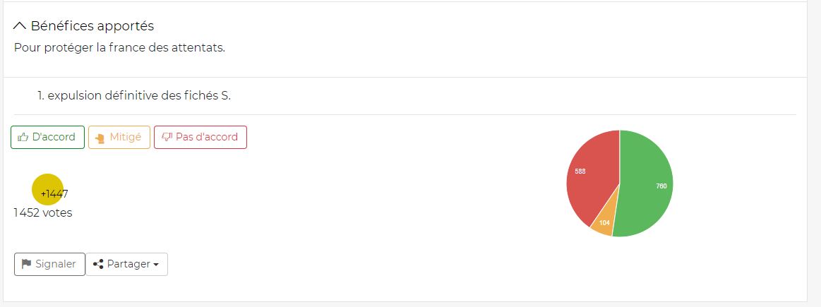 Totalement d'accord Citation : Lorsque je vois sur le site le vrai debat, je me rend compte encore plus à quel point il a de tout. Je connaissais pas. J'ai vite fait vu. Mais franchement, meme sans etre pro-GJ, je trouve ce site mieux que granddebat.fr. Enfin au moins sur le fait qu'on puisse voter pour/contre les propositions, pour permettre un espèce de classement (s'il y a). Le défaut du site granddebat.fr c'est que y a pas de système de vote, pas de classement. Tu rentres ta proposition, ca va dans une boite noire ou tu ne sais pas comment sera traiter l'info. Maintenant d'accord que le site le-vrai-debat.fr du liste des revendications qui vont dans tous les sens. Et pareil, je reste méfiant sur le RIC. Je pense que chacun vote dans son petit intérêt perso. Pas pour l'intérêt général. Donc il faudrait que le RIC ne soit pas totalement contraignant. Que les politiciens aient un moyen de ne pas adopter une demande par RIC. Bref comme d'hab, tout dépend des règles appliquées au RIC. Soit ca fou la merde, soit c'est utile, soit ca change rien Citation :