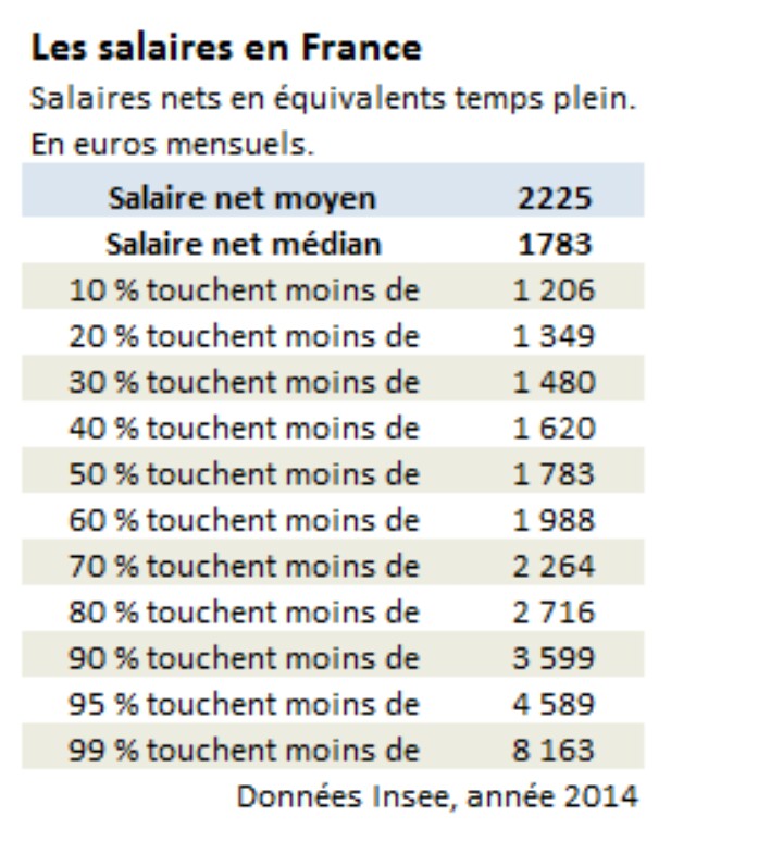 Musique flippante, zoom/dezoom... J'ai lâché au bout de 20secondes mais je dois avouer que c'est assez cocasse de s'appeler "Lapierre" ![]() @Croc63 C'est difficile d'estimer le nombre de gens qui sont "légitimes" à réclamer une "vie décente" (il ya rapport de l'INSEE sur l'économie française de 2018 mais il fait près de 300 pages) Quelques chiffres peuvent cependant aider , exemple : ![]() Sachant qu'il n'y a pas ici les plus haut revenus (du capital), les chômeurs (10%), les aides sociales (APL = 25% des foyers) et je ne crois pas qu'il y ai artisans, libérales, indépendant (25% de la population active). On sait aussi que 10% de la population vit sous le seuil de pauvreté (environ 800€) La plupart des économistes s'accordent à dire que 1500€ nets, tous revenus compris (13eme mois, participation ou intéressement dans certaines entreprises, CAF, APL et autres aides sociales...) "suffisent à assurer une vie décente" (manger à sa faim, un toit sur la tête, du chauffage...) mais c'est cette définition qui reste très subjective. Voilà pour les faits, je vous laisse tirer vos conclusions...
