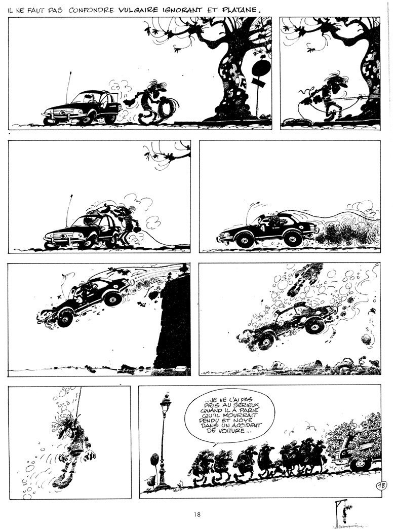 Les idées noires de frankin, étrange de voir le trait de Gaston Lagaffe avec des dessins aussi trash.
