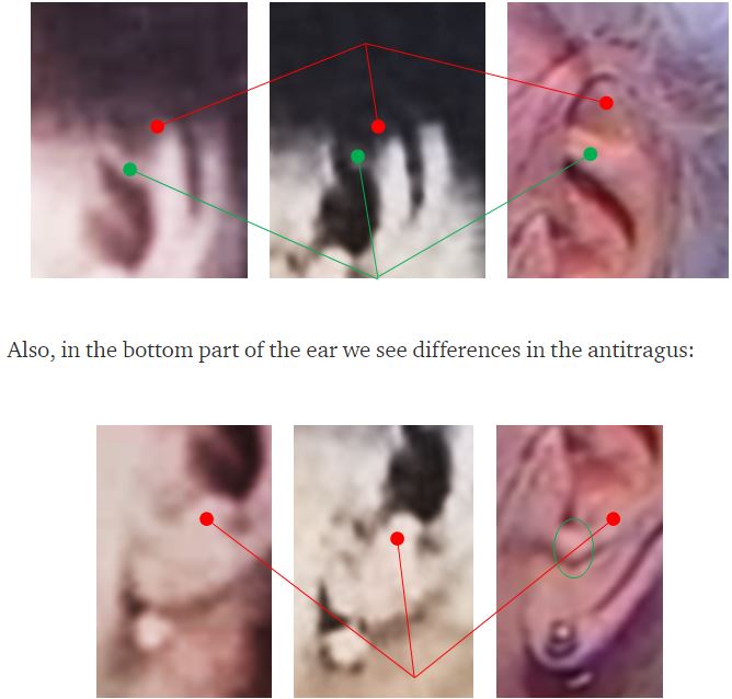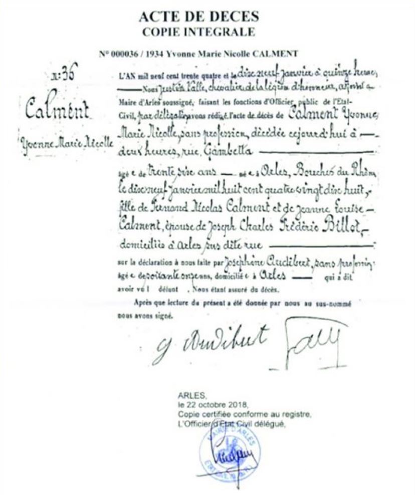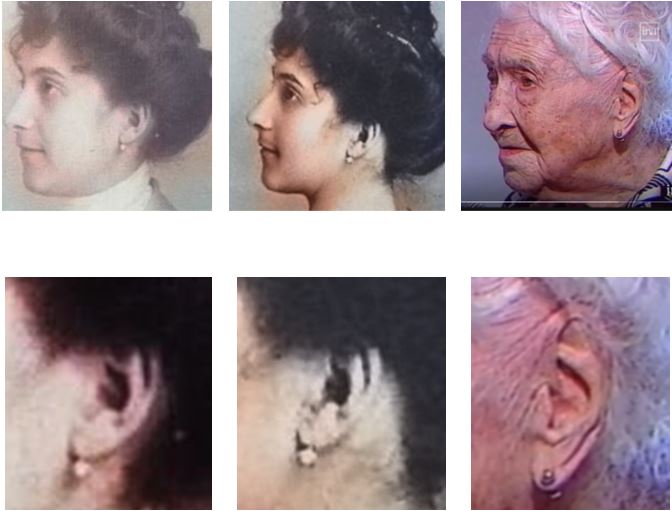 Cette "étude" se basait entre autre sur une autre étude d'un de ses compatriote, Nikolay Zak, ex-doctorant en mathématiques (Jeanne Calment: the secret of longevity) Vous avez peut être entendu y a quelques jours qu'il y a eu du nouveau sur cette histoire : Une étude franco-suisse qui reprend chaque point critiqué par les russes, pour en conclure que Jeanne Calment a bien eu 122 ans (Jeanne Calment: Validation of the Duration of Her Life, par J.-M. Robine et M. Allard). Au global, je trouve que les 3 études me semblent être de qualité un peu moyenne et donc pas 100% fiable. Ces "études" ne ressemble pas, sur la forme, aux articles scientifiques traditionnels. Donc bon, les 3 "études" sont à mon avis à prendre avec des pincettes (y a t'il eu un commité de relecture pour vérifier les méthodologies, les données, etc ?) Puis à mon avis dans cette affaire, les 2 camps (russes et francais) ont tendance à défendre leur pré carré : - le russe qui bosse dans le vieillissement pour se faire son coup de com' sur son entreprise, - le francais par chauvinisme, pour défendre le prestige francais. De la 1ère étude (de ce Yuri Deigin, partie 1, partie 2, partie 3) je trouvais intéressant les points suivants : - L'acte de décès de Yvonne Calment (fille de Jeanne Calment). Yvonne est supposée morte d'une pneumonie à l'age de 36 ans. Selon l'article russe, l'acte de décès avait été délivré sur la base d'une seule témoin agée de 71 ans (donc pas d'un médecin ou infirmère), qui l'aurait donc "vu morte". Donc pas de validation du décès de Yvonne Calment par un médecin officiel ? (Comme cela est le cas de nos jours). Mais bon, le maire d'Arles (ou l'adjoint au maire) a officiellement validé l'acte de décès. Ca ne me semble pas non plus invraissemblant comme situation. ![]() - En 1994, la prétendu Jeanne Calment était en maison de retraite. Les Archives de Arles lui avait alors demandé de lui envoyer des photos de sa famille pour alimenter l'histoire locale. La prétendue Jeanne Calment aurait alors demandé à une connaissance familiale éloignée (Madame Bigonnet) de bruler toutes ses photos de famille (même si Madame Bigonnet a réussi a en préserver quelques unes du feu). Source : Via l'article de Nikolay Zak, Source 15 : Lamy J.-C. Le mystère de la chambre Jeanne Calment / Fayard, 2013. 264 c. - Me souviens qu'à l'époque, un autre argument m'avait interpellé dans son article, partie 2 : La forme des oreilles qui ne seraient aps identique entre la vraie Jeanne Calment jeune et la supposée vieille Jeanne Calment (qui ne sserait donc que Yvonne, sa fille). C'est vrai que les parties molles des oreilles s'allongent avec le temps. Mais il est peu concenvable que les circonvolutions cartilagineuses changent. Or sur la base de son analyse photo, il semble que si. Suggérant que la vieille Jeanne Calment décédée en 1997 serait en fait sa fille Yvonne Calment. ![]() ![]() C'était le plus gros argument que j'avais retenu. Mais retournement de situation ! L'auteur a corrigé son article, pour dire que sur la abse d'autres photos, en fait tout cela tombait à l'eau ! Ce retournement me fait tout de même douter de la véracité des articles russes. A présent je décide plutot de croire la version établie à ce jour (Jeanne Calment est bien décédée à l'age de 122 ans en 1997), faute de preuve convainquante