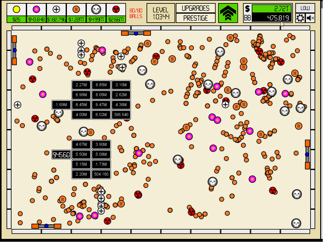 Je sais pas trop s'il y a une fin. Y a des briques, y a des briques "gold" à récupérer et à dépenser, des briques noires qui te permettent d'aller voir le boss pour récupérer des points "skill", que tu peux dépenser pour t'améliorer et recommencer plus puissant, etc etc. Et recommencer. Un idle, en quelque sorte...