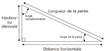 L'angle de pente (en degré) c'est autre chose Et sachant que tan = côté opposé / côté adjacent (en math). Bah on voit que c'est pareil que hauteur / distance horizontale. Donc la tangente de l'angle de la pente = le % de la pente (Avec un schéma on comprend mieux) EDIT ![]()