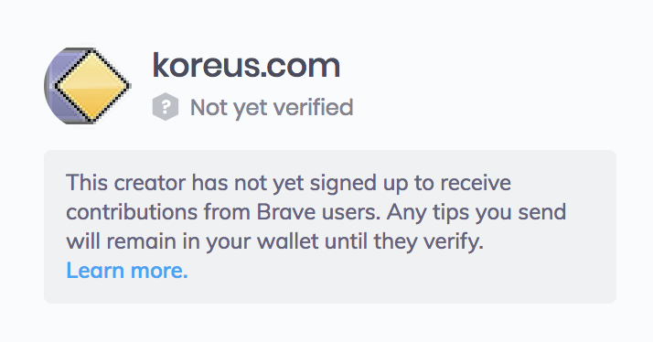| Je viens d'arriver    Inscrit: 16/03/2018 01:09 Post(s): 89 Karma: 91 | Bonjour, Comme je l'ai déjà dit dans le forum je suis fan de Brave (le nouveau navigateur) et de sa politique anti-PUB. Les utilisateurs peuvent gagner ou faire des donations de la cryptomonnaie BAT. Appréciant beaucoup ce site, j'aimerais que Koreus fasse certifier son site ou/et sa chaine youtube pour recevoir des/mes dons   Le site de certification. How to Verify a YouTube Channel with Brave Payments (verified publisher)