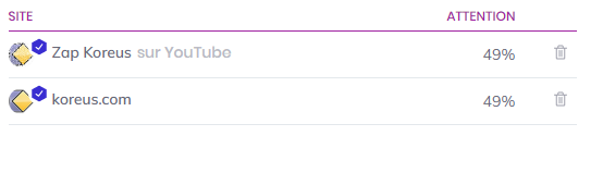 | Fantôme | @Koreus Pour le moment, histoire de pouvoir tester ça au mieux, j'ai mis 5 pubs/h de navigation. Je suis un peu surpris car aucune notification n'est apparue depuis hier, je n'ai donc pas cliqué sur une seule pub et n'en ai pas vu, et l'estimation sur ma page indique que j'ai déjà cumulé 0.25BAT pour le mois. Comment est-ce possible ?  D'autre part, la ligne en dessous m'indique que j'ai reçu 5 notifications publicitaires, mais comme je l'ai dit avant, je ne les ai pas vues... Pourtant je fais attention. Tu sais si ces notifications sont comme dans la vidéo ? Une sorte de petit pop-up gris-blanc en haut à droite ? Edit : Pourquoi tous les éléments d'un même "site" ne sont pas regroupés dans une seule ligne ? C'est perturbant, et un peu chiant, ça fait au moins 5 google que j'exclue de la liste...  D'ailleurs, pourquoi établir une différence entre "koreus.com" et "Zap Koreus" ? Tu as des infos sur leur méthode de tri ?