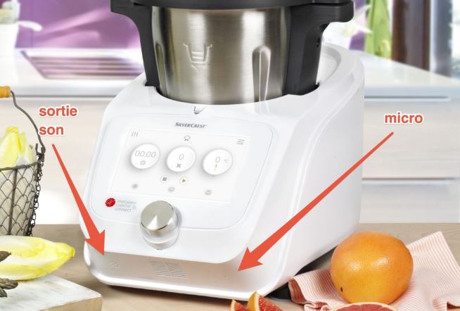 Cela signifie que le fabricant a donc volontairement choisi de déporter le micro hors de la tablette, et de créer une sortie spécifique pour lui. Lidl prévoit-il, dans un futur proche, d’autoriser la commande par la voix ? La notice de Monsieur Cuisine Connect mentionne en tout cas bien la possibilité que l’appareil fasse des mises à jour logiciel automatiques, donc sans avoir besoin de l’accord de l’utilisateur.