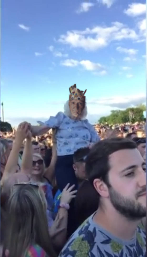 Une mamie de 82 ans sur les épaules à un festival à Glasgow en Ecosse