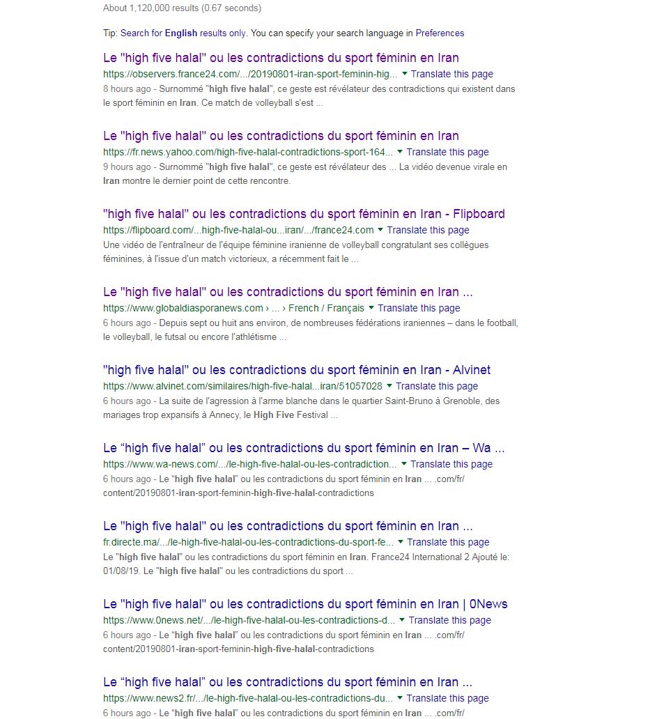Une vidéo de l’entraîneur de l’équipe féminine iranienne de volleyball congratulant ses collègues féminines, à l’issue d’un match victorieux, a récemment fait le tour des réseaux sociaux en Iran. La raison ? Au lieu de taper dans les mains de ses collègues, l’entraîneur leur tend une ardoise pour qu’elles tapent dessus, les contacts hommes-femmes étant interdits dans le pays. Surnommé "high five halal", ce geste est révélateur des contradictions qui existent dans le sport féminin en Iran. Sources