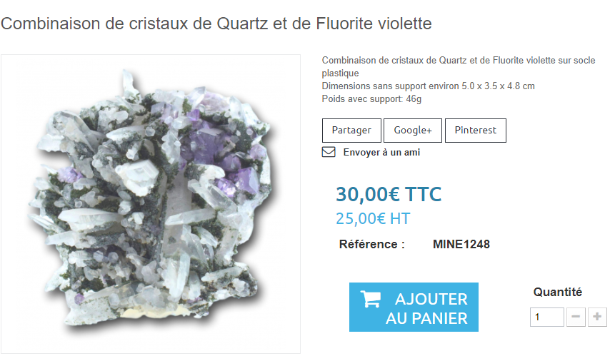Perso j'ai une préférence pour l'améthyste comme celle au fond à droite : ![]() Pour un spécimen de cette taille, il faut compter aux alentours de 80-85€ Je connaissais pas le site que tu mentionne mais j'ai l'impression qu'il ne font que dans le grand modèle et ça c'est pas ma came...et surtout pas la place