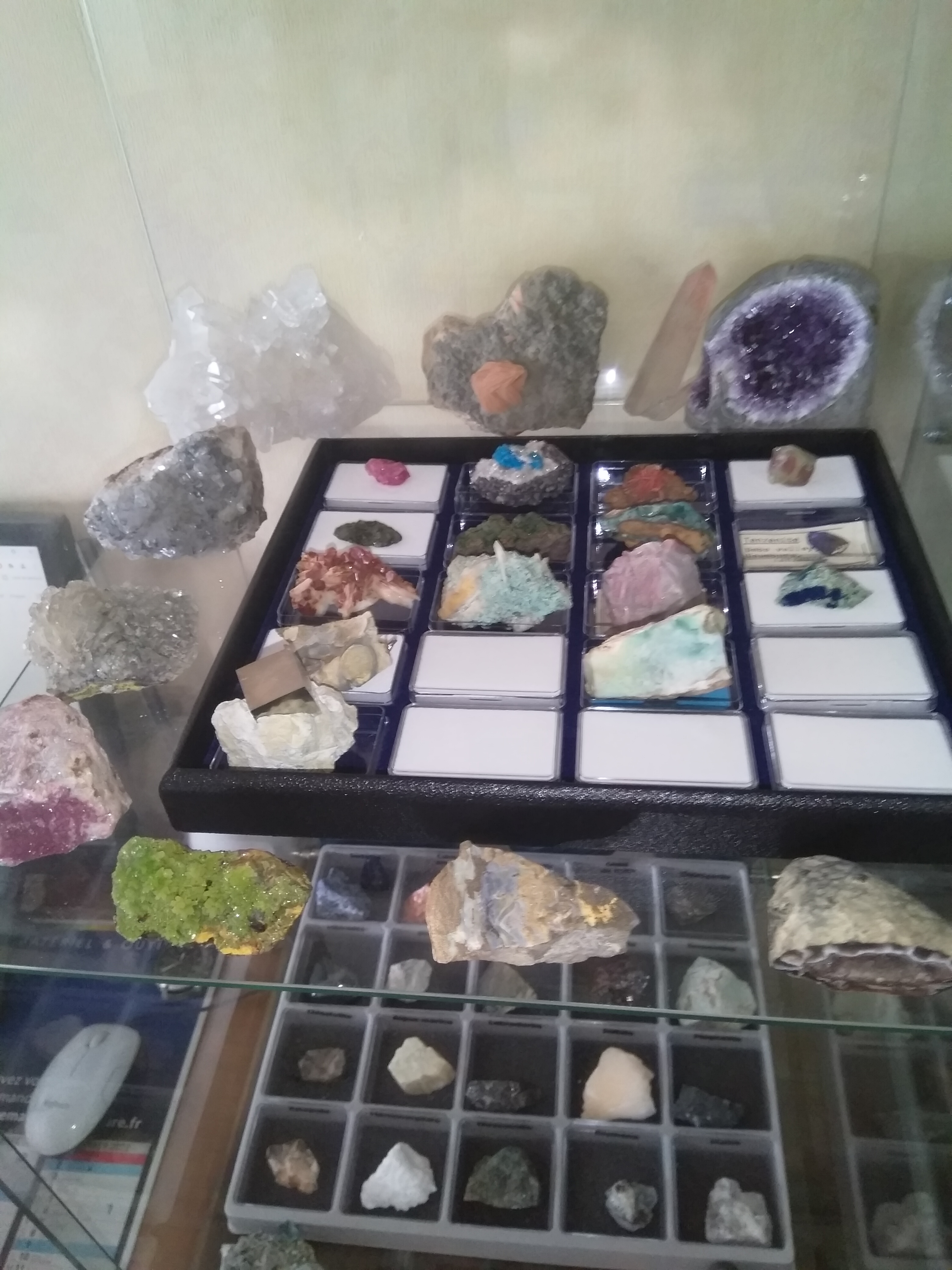EDIT : Le haut de la vitrine 1 avec mon cadeau de Noël de mon fils dans la carré gauche du présentoir : un béryl rouge, petit mais qui coûte quand même ! ![]() (ma préférée reste quand même ma tanzanite)