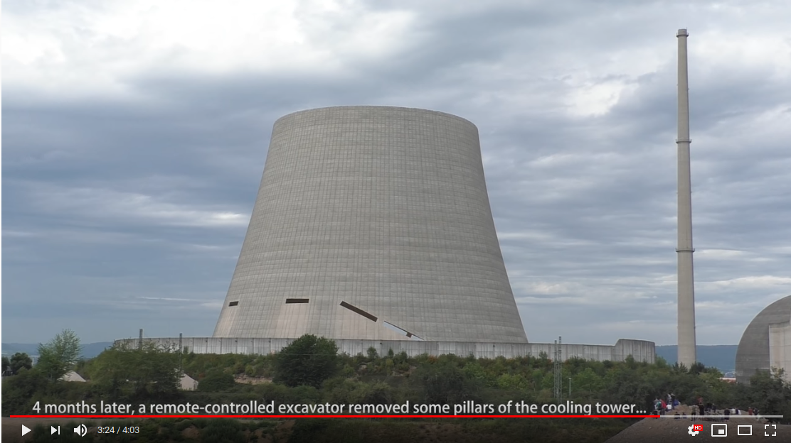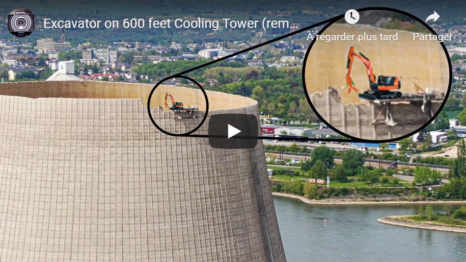La vidéo est en article : Une pelleteuse grignote une tour de refroidissement (Allemagne)