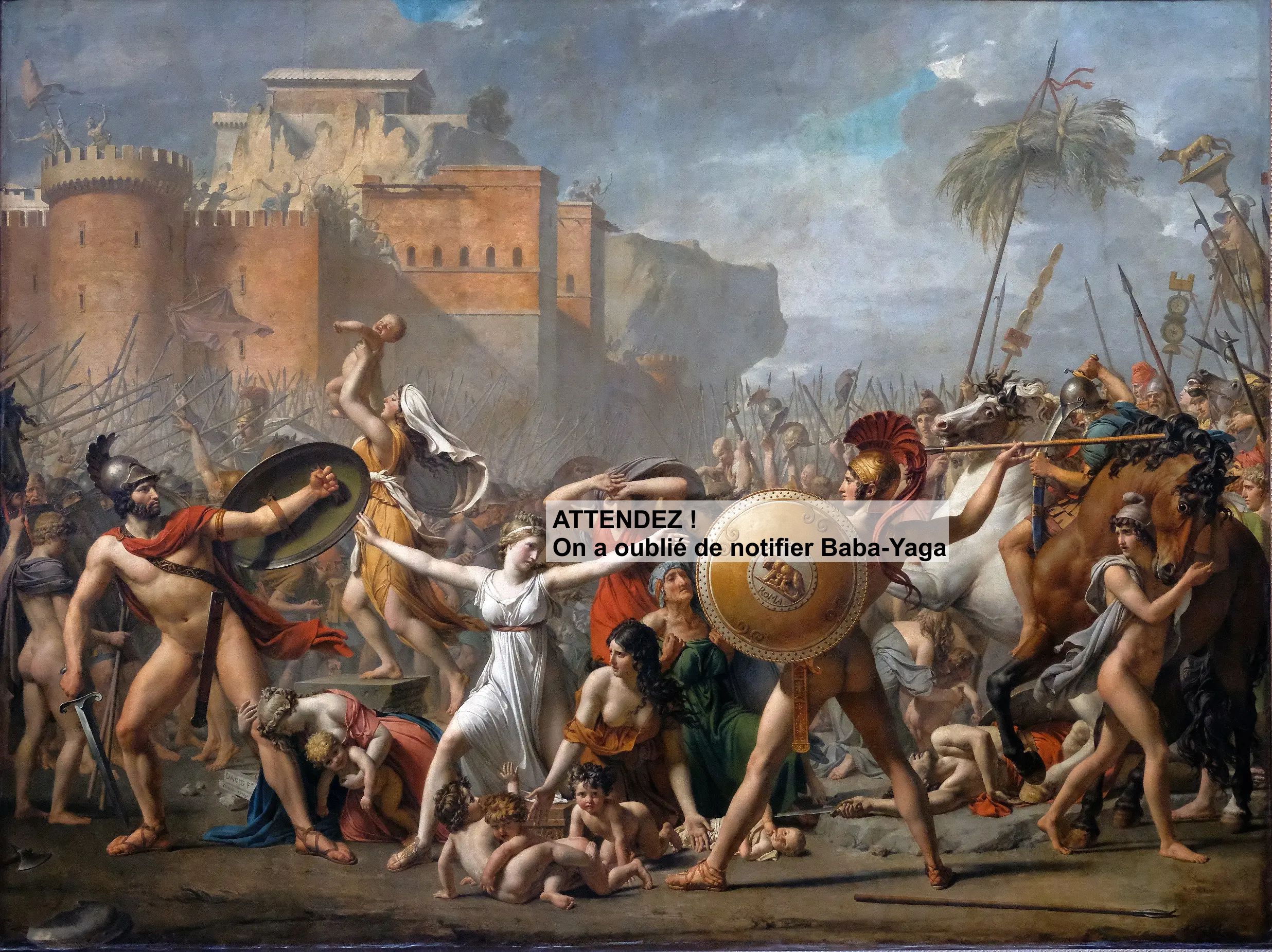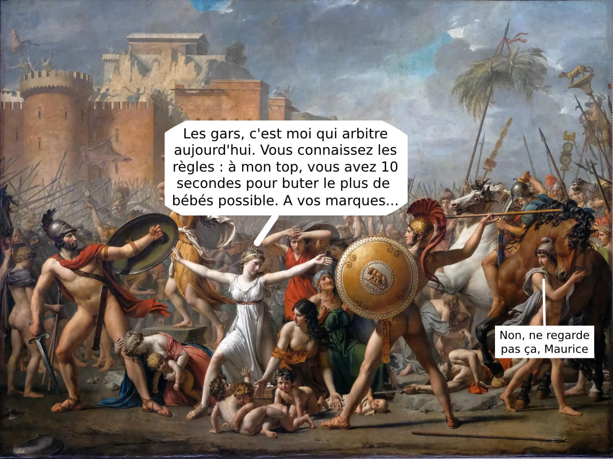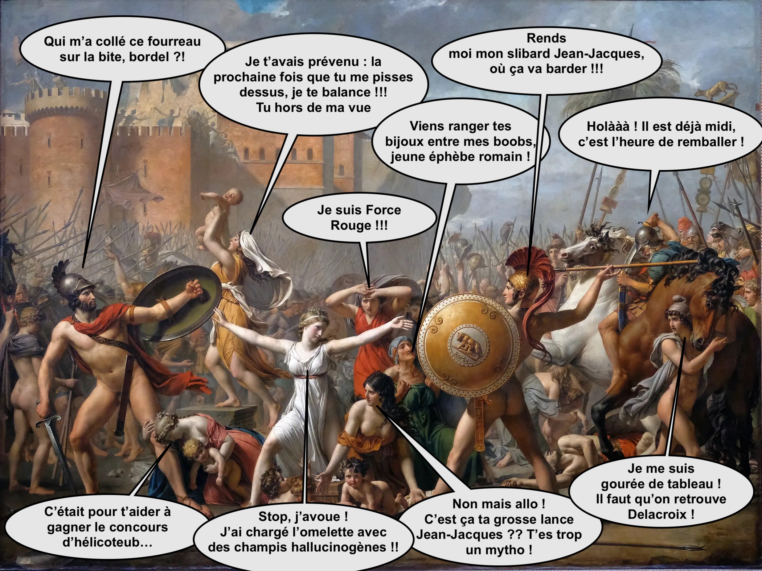 Les Sabines, tableau peint par Jacques-Louis David entre 1796 et 1799 ![]() La meuf en blanc: "wallah!!! Arrêté arrêté wesh j ai commandé des pizzas ,vazy y en aura pour tout le monde ma gueule!!!"