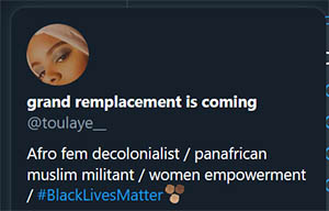 Le combo "grand remplacement is coming + decolonialist dans le pseudo, ils ont honte de rien ^^