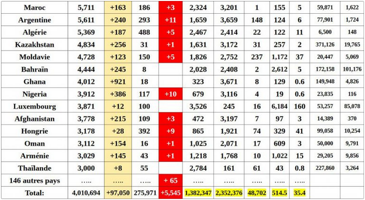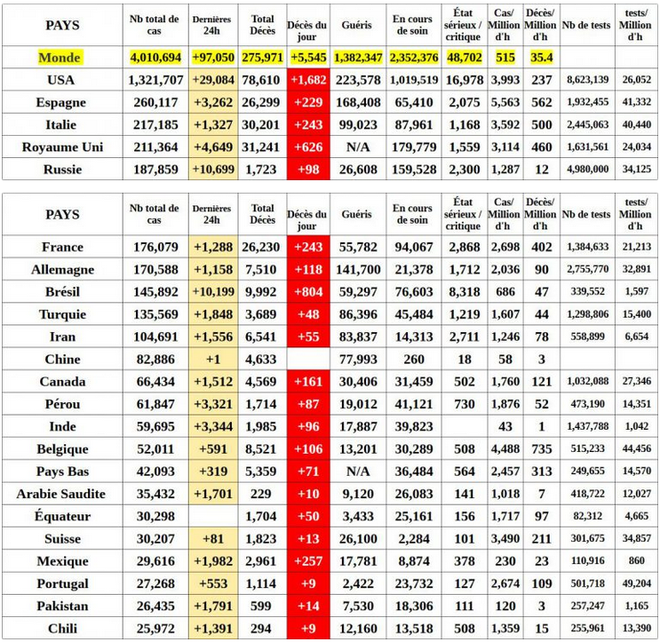 Si tu savais à quel point ton mépris et tes petites interventions creuses m'en touchent une sans faire bouger l'autre ! ![]() Je serais bien tenté de te demander une explication concernant cette brutale chute du nb de décès liés à la grippe saisonnière (d'en gros 12500 en moyenne sur les 3 années précédentes à zéro d'après Santé Publique France (site conspirationniste néo-nazi d'extrème droite ! ^^) et en quoi il faut paniquer pour (Je vais googler les statistiques, c'est débile oui mais on ne se refait pas !) d'après les dernières statistiques officielles : - 0,05% de la population mondiale touchée pour 0,0035% de décès - 0,27% de la population française touchée pour 0,04% de décès (Oui oui, le confinement qui arrive des mois en retard a sauvé le monde, on aurait pu être au moins X2, X3, un carnage quoi !) Le jour où tu as un truc pertinent à me dire, un minimum étayé même si ça semble pas être ton truc, n'hésite pas à m'en faire part, je le partagerai volontiers même si ça va pas dans "mon sens". ![]() Point de situation du Samedi 9 mai 0h00 : ![]() ![]() ![]() ![]() @Alex333 Qu'il pourrait éventuellement sembler qu'on attribue au covid' des morts de la grippe... Merde, je pensais que ça coulait de source ! ^^' (Et je me suis pas attaqué à la pneumonie) Période grippale généralement constatée : de novembre à avril Début du confinement : mi mars. Donc quoi, 15 jours de confinement ont fait chuter aussi drastiquement les décès de la grippe saisonnière ? * * * * * * * * * * * * * * * * * * * * * * * * * * * * * * * * * * * * * * * * * * * POUR RAPPEL : Le titre de ce topic est "Coronavirus : ou l'art de faire peur". Je ne remets pas en question que le Coronavirus existe, ni que les hôpitaux sont en galère, ni que des gens en meurent. Je dis très ouvertement qu'on en fait des caisses comme si on allait tous crever et que les chiffres officielles disent le contraire. (Et que dans la panique, des gens morts de la grippe saisonnière pourraient être catégorisés morts du Covid'). Point barre. Je vais pas niquer toute ma journée pour ça les koupains !! ^^' Bon pour ma part, je ne viendrai plus polluer ce topic ! Mea culpa je suis à moitié barge et l'autre moitié ne vaut guère plus ! ![]()