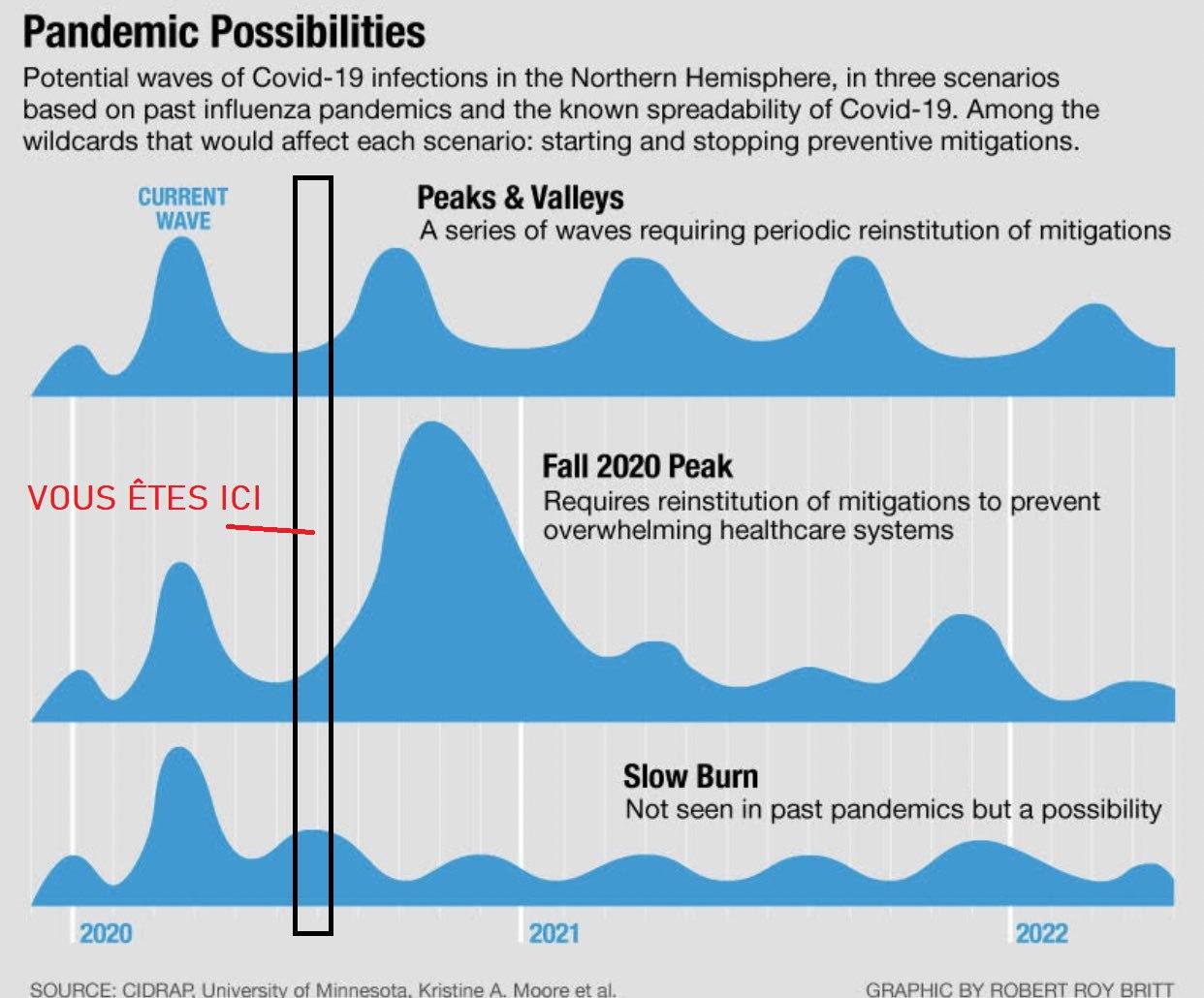 | Je masterise !    Inscrit: 12/05/2015 11:43 Post(s): 4696 Karma: 3169 | @21210  Malheureusement ça pourrait revenir, en Allemagne 650 000 personnes sont de nouveaux confinés. Le truc, c'est que quand on verra la seconde vague, Bein ce sera déjà trop tard ^^ ! Espérons que les gens soient moins cons a l'avenir.