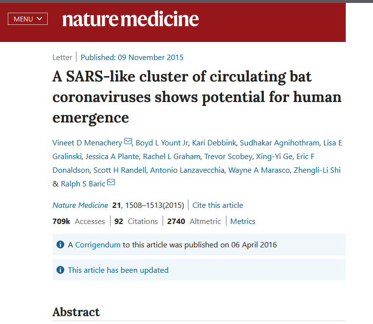 | Je masterise !    Inscrit: 11/05/2008 01:31 Post(s): 4349 Karma: 5338 | J'ai trouvé cet article scientifique (bon c'est en anglais). https://www.nature.com/articles/nm.3985?fbclid=IwAR2mtvTIW0wcvxypaZYluShFCgwMhB1SlSrG0KbtUkn9cSbKrmOastfhvAc  Résumé traduit : L'émergence du coronavirus du syndrome respiratoire aigu sévère (SRAS-CoV) et du syndrome respiratoire du Moyen-Orient (MERS) -CoV souligne la menace d'événements de transmission inter-espèces conduisant à des épidémies chez l'homme. Ici, nous examinons le potentiel de maladie d'un virus de type SRAS, SHC014-CoV, qui circule actuellement dans les populations de chauves-souris chinoises en fer à cheval1. En utilisant le système de génétique inverse SARS-CoV2, nous avons généré et caractérisé un virus chimérique exprimant le pic du coronavirus de chauve-souris SHC014 dans un squelette SARS-CoV adapté à la souris. Les résultats indiquent que les virus du groupe 2b codant pour le pic SHC014 dans un squelette de type sauvage peuvent utiliser efficacement plusieurs orthologues de l'enzyme de conversion de l'angiotensine humaine II (ACE2), se répliquer efficacement dans les cellules des voies respiratoires humaines primaires et atteindre des titres in vitro équivalents à une épidémie souches de SARS-CoV. De plus, des expériences in vivo démontrent la réplication du virus chimérique dans le poumon de souris avec une pathogenèse notable. L'évaluation des modalités immunothérapeutiques et prophylactiques basées sur le SRAS a révélé une faible efficacité; les approches à base d'anticorps monoclonaux et de vaccins n'ont pas réussi à neutraliser et à protéger contre l'infection par les CoV en utilisant la nouvelle protéine de pointe. Sur la base de ces résultats, nous avons dérivé synthétiquement un virus recombinant infectieux SHC014 de pleine longueur et démontrons une réplication virale robuste à la fois in vitro et in vivo. Nos travaux suggèrent un risque potentiel de réémergence du SRAS-CoV à partir de virus circulant actuellement dans les populations de chauves-souris. Donc faite vous votre propre avis : mais depuis 2015 une équipe de chercheur fabrique des virus chimérique (SHC014-Cov) pour tester in vitro sur des souris la pathogénicité. J'espère qu'aucune de ses souches recombinées ne se sont échappées du laboratoire P4 de Wuhan. Car le marché au animaux à bon dos. Bonne lecture, en tout cas depuis 2015 ils savaient les risques très précisément. Pour rappel, ce Covid-19 a une petite particularité que les autres coronavirus n'ont pas : https://www.thailandmedical.news/news/breaking-latestcoronavirus-research-reveals-that-the-virus-has-mutated-gene-similar-to-hiv-and-is-1,000-times-more-potent- J'espère que cette petite particularité n'a pas été amené par une version chimérique de laboratoire.