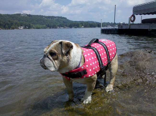 Un bouledogue ne doit jamais sortir sans son gilet de sauvetage!