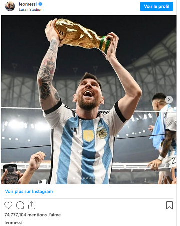 La Coupe du Monde que Messi porte sur la photo la plus likée de l'histoire d'Instagram était une réplique du vrai trophée.