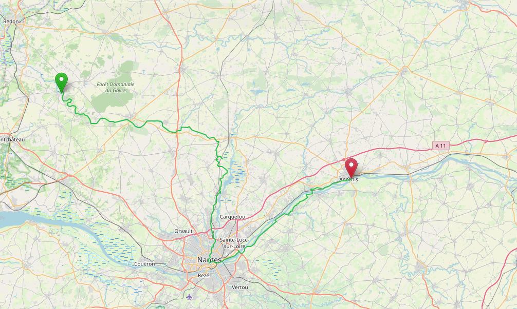 Je me souviens de la dernière fois en vélo où j'ai voulu esquiver Nantes pour récuperer le canal de Nantes à Brest. J'ai quitté l'eurovélo à Ancenis, puis j'ai galéré.