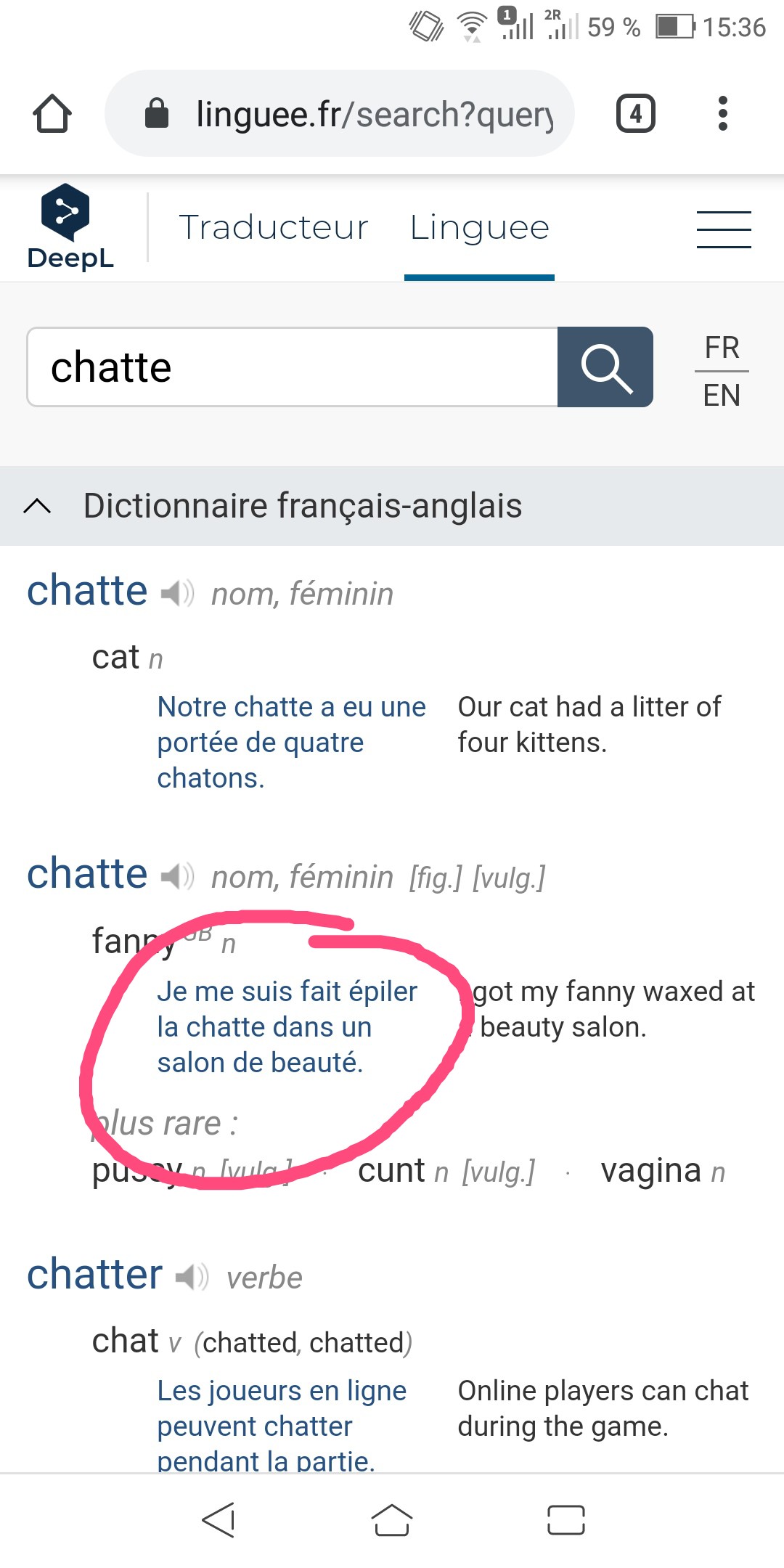 @MaxiSucuk Oui linguee couvre assez largement les usages et en France comme dans les pays anglophone le déminin de chat/cat est chatte/pussy et désigne le sexe féminin. Mais même si en français on evite d'utiliser chatte pour parler du chat femelle c'est encore plus vrai en anglais. Ce que j'ai dit il y a déjà quelques posts.