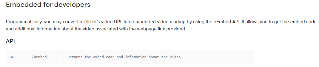 J'avais déjà rencontré ce problème: on ne peut pas intégrer une vidéo Tiktok avec le lien fourni par l'application, par exemple: https://vm.tiktok.com/7rhrYP/ Penses tu qu'il serait possible de faire un convertisseur de lien tiktok lorsque l'on utilise le bouton d'intégration ? Convertir un lien https://vm.tiktok.com/7rhrYP/ en lien embed https://www.tiktok.com/embed/6810324672299764997 ? J'ai trouver ça sur le site de Tiktok, je ne sais pas si ça peut t'aider ? -> Lien ![]()