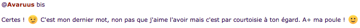 Deux points de vue se font face, sans arbitre, juste avec la bonne foi de chacun. Élément qui devrait trôner à tous les débats. Je tenais Toi et @Avaruus à vous remercier pour la qualité de ces échanges, d'ailleurs.