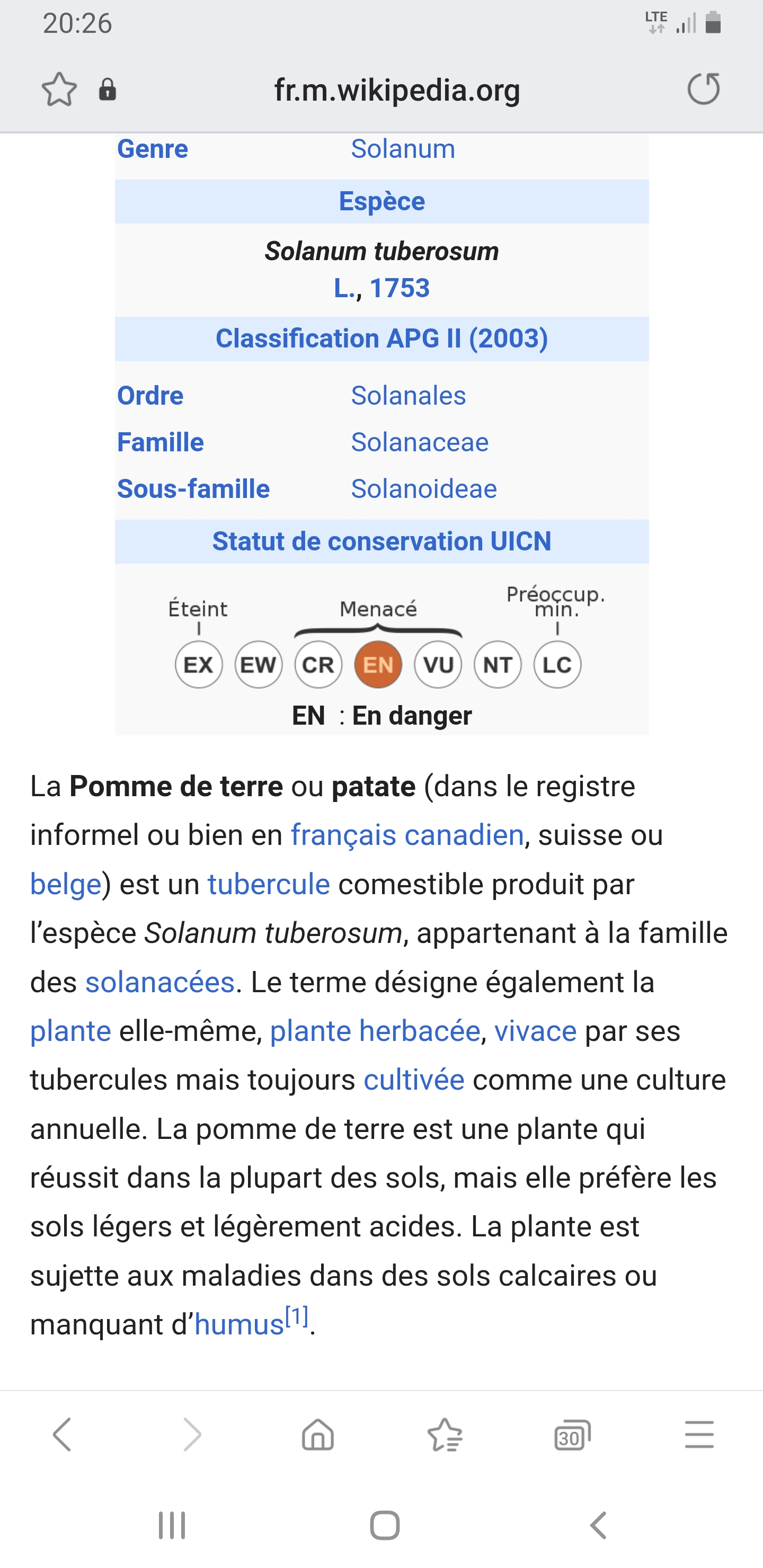Que la pomme de terre a le statut "menacé" sur Wikipedia !!!
