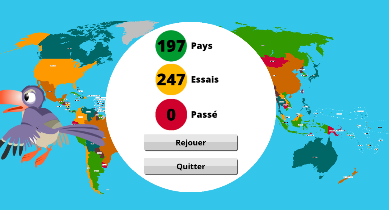 | Je suis accro    Inscrit: 06/08/2020 02:22 Post(s): 1961 Karma: 2588 | Faudrait faire la même avec les drapeaux, vu que les pays je suis pas fort.   Mais les drapeaux je me débrouille mieux.