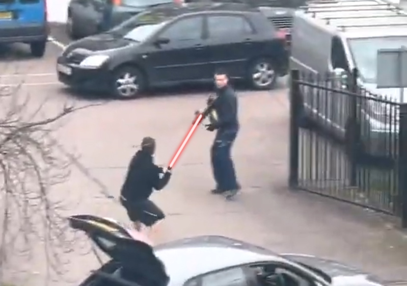A Londres, un automobiliste sort de sa voiture avec son parapluie pour se battre avec uns skateur
