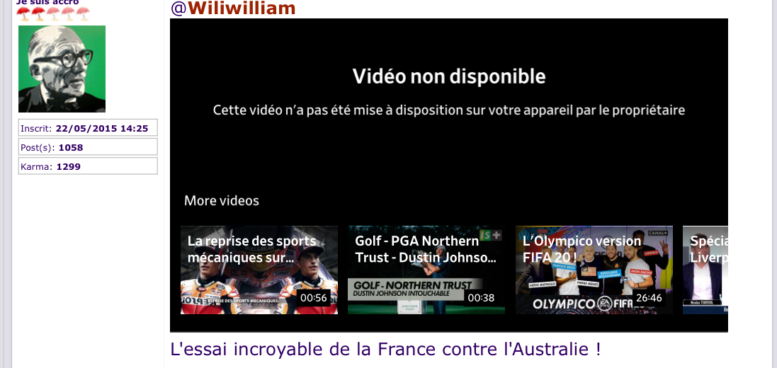 Je partage une petite vidéo sur la réaction des joueurs du XV de France après la victoire face à l'Australie mardi dernier chez eux. Ça faisait plus de 30ans qu'on avait pas gagné. J'ai également renommé le topic pour qu'il se consacre exclusivement au rugby et au XV de France, histoire de tout regrouper et pour éviter de s'éparpiller. ![]()