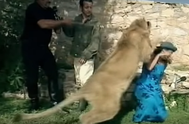 C'est vrai que c'est sa faute à elle aussi, pourquoi elle vient quant on lui dit de venir à côté d'un lion qui n'est pas dressé pour la Tv et qui donc n'avait rien à foutre là?