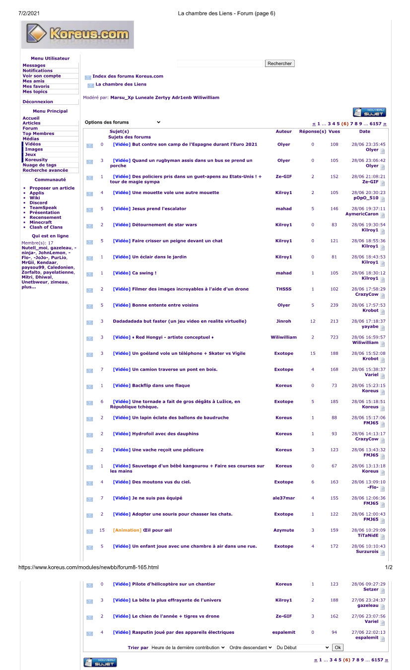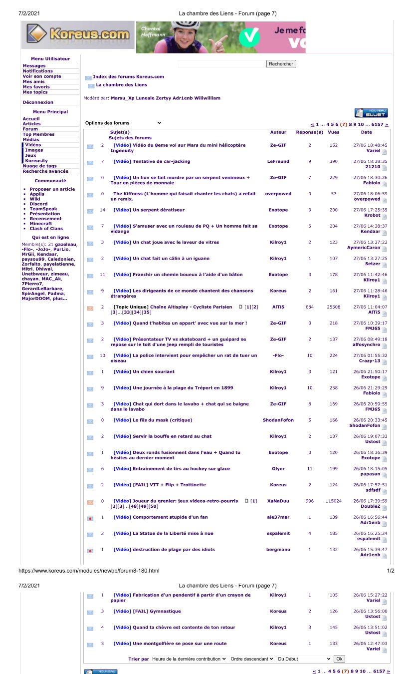 https://www.koreus.com/modules/newbb/topic230139.html https://www.koreus.com/modules/newbb/topic230142.html Pour tous, la dernière réponse est 28, ils devraient donc être à la page 7 pour le moment