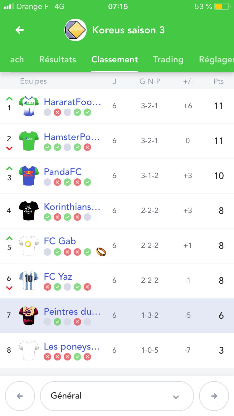 | Je poste trop    Inscrit: 18/02/2005 18:32 Post(s): 15826 Karma: 17001 | Serré cette première partie du championnat : 2 1er 1 2ème 3 3ème