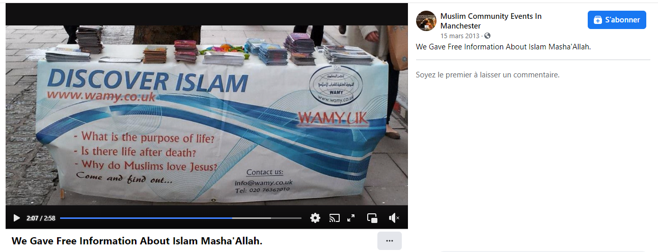 il suffit de chercher un peu ( il n'y a pas plus aveugle que celui qui ne veut pas voir) leur page FB : ![]() https://fr.wikipedia.org/wiki/Assembl%C3%A9e_mondiale_de_la_jeunesse_musulmane ![]()