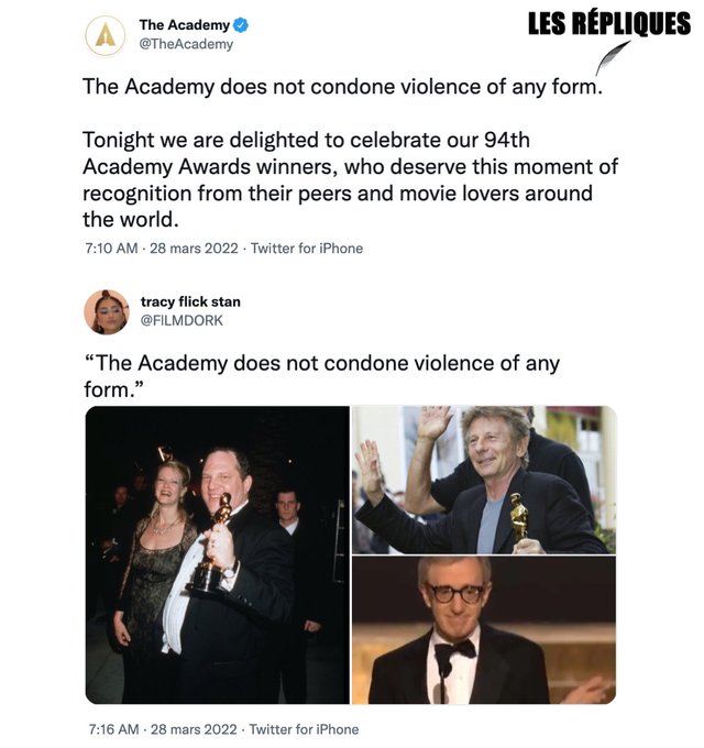 Vu que le compte Twitter des Oscars a condamné cette violence, ce n'était clairement pas une mise en scène