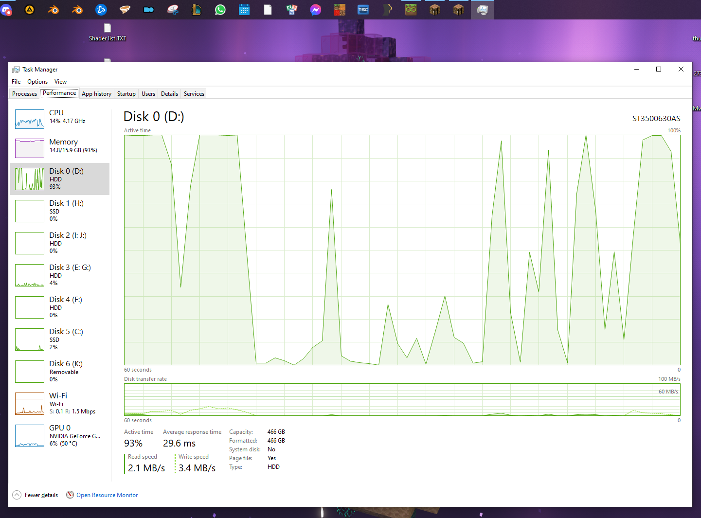 @Grobreaker C'est surement dû au système de pagination, qui permet de transformer des informations stocké dans ta RAM en fichiers sur le disque lorsque tu n'as plus beaucoup de RAM disponible, sur ta capture d'écran tu as sélectionné ton disque D et on peux y voir en bas "Page file: Yes" et en sachant que tu as deux Minecraft d'ouvert ça doit venir de là (surtout si tu utilises des mods).