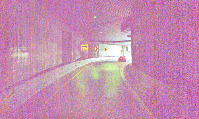 ah ouais, on voit les bandes blanches incurvées juste avant la sortie du tunnel