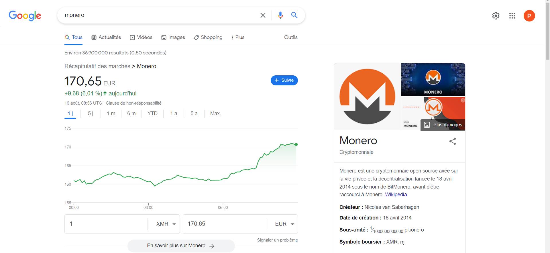 | J'aime glander ici    Inscrit: 09/11/2014 18:04 Post(s): 5512 Karma: 3105 | @MacGeorges C'est écrit dessus un peu... C'est une cryptomonnaie, la plus importante des anonymes et dont les créateurs ont une bonne mentalité. À mon avis, le meilleur choix à long terme. @Kilroy1 La protection de la vie privée passe avant tout par arrêter d'utiliser cet espion géant de Google!! Citation :