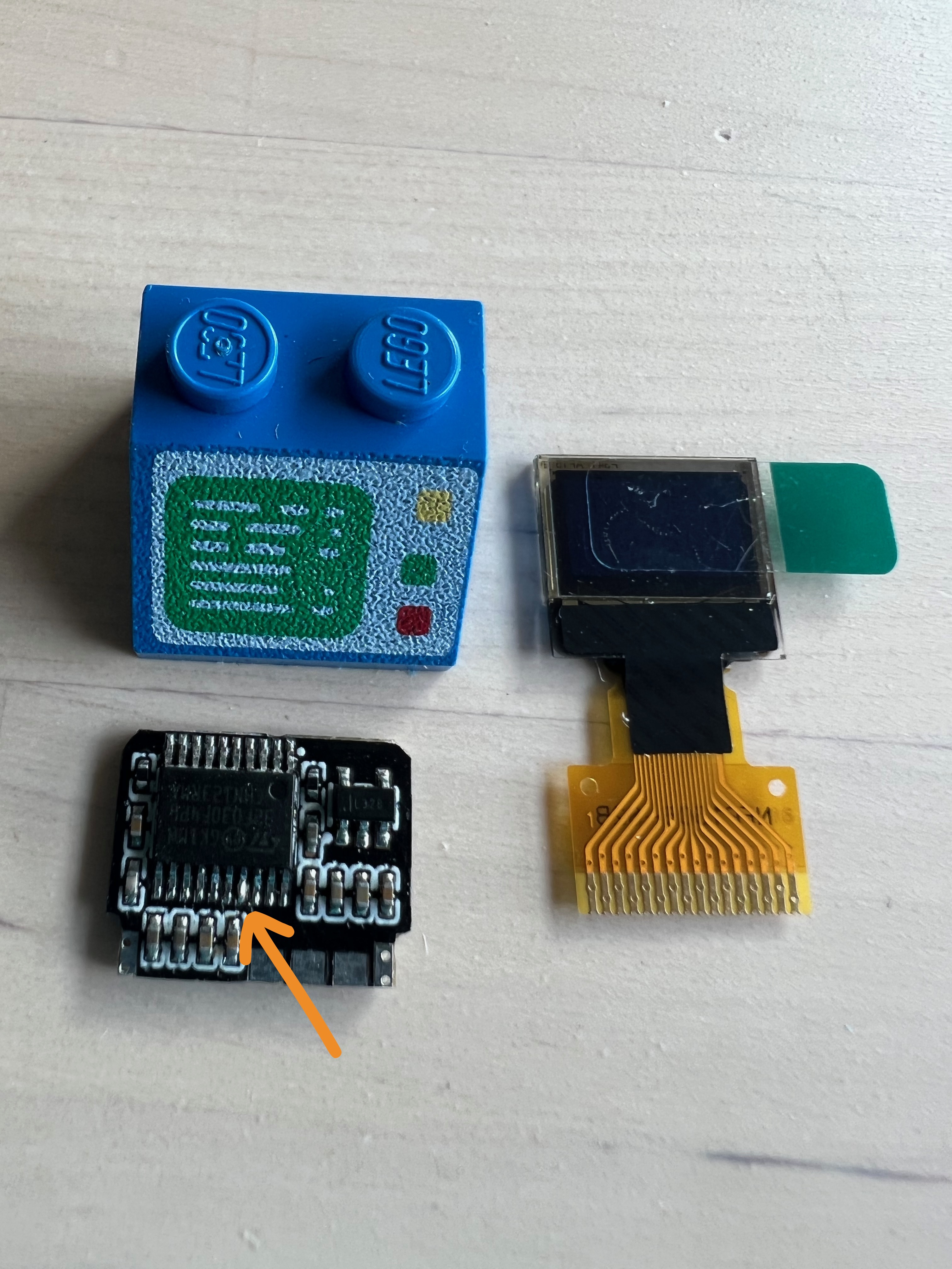 la brique Lego contient La CM et l'écran Oled , le tout est dans la brique, le support sert juste pour l'alimentation il y a des infos dans l'article suivant : https://www.journaldugeek.com/2022/09/12/un-ordinateur-complet-dans-une-brique-lego/ @Wiliwilliam j'ai retrouvé la photo de ce qui se trouve à l'intérieur de la brique  Plus de détail dans le fil twitter (https://twitter.com/ancient_james/status/1534645930342744064) et aussi une autre vidéo :