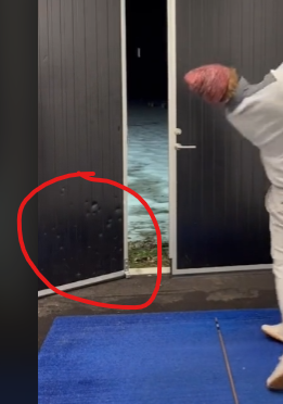 Cet homme fait des swings précis à travers l'ouverture d'une porte coulissante.