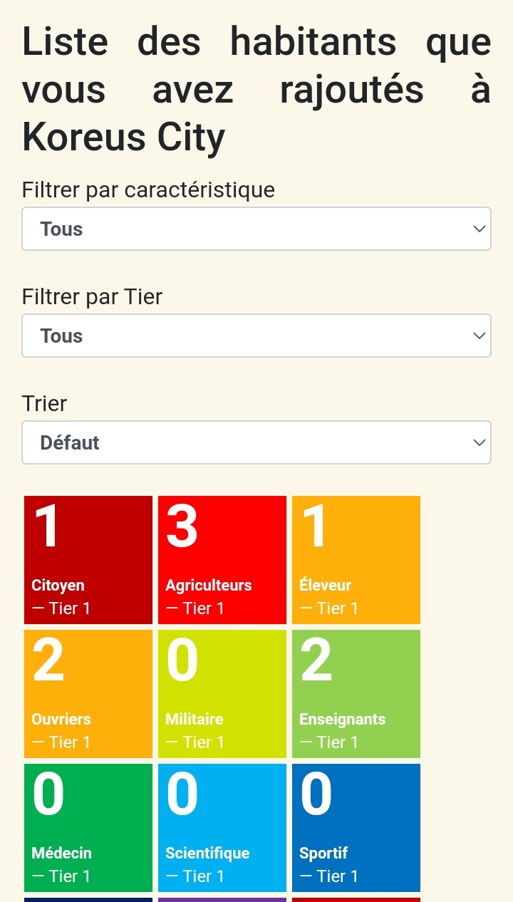 @-Flo- Sur la page d'accueil tout en bas, t'as la liste des habitants que t'as déjà rajoutés à la ville, avec le nombre qui correspond à ceux que tu possèdes dans ta bibliothèque.