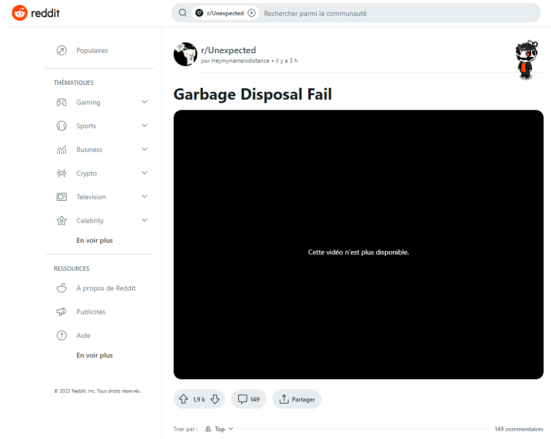 Pour moi, la vidéo n'est pas disponible même en allant sur le site. ![]() Edit : Apparemment, la vidéo est revenu mais il faut avoir un compte Reddit pour la voir sur leur site.