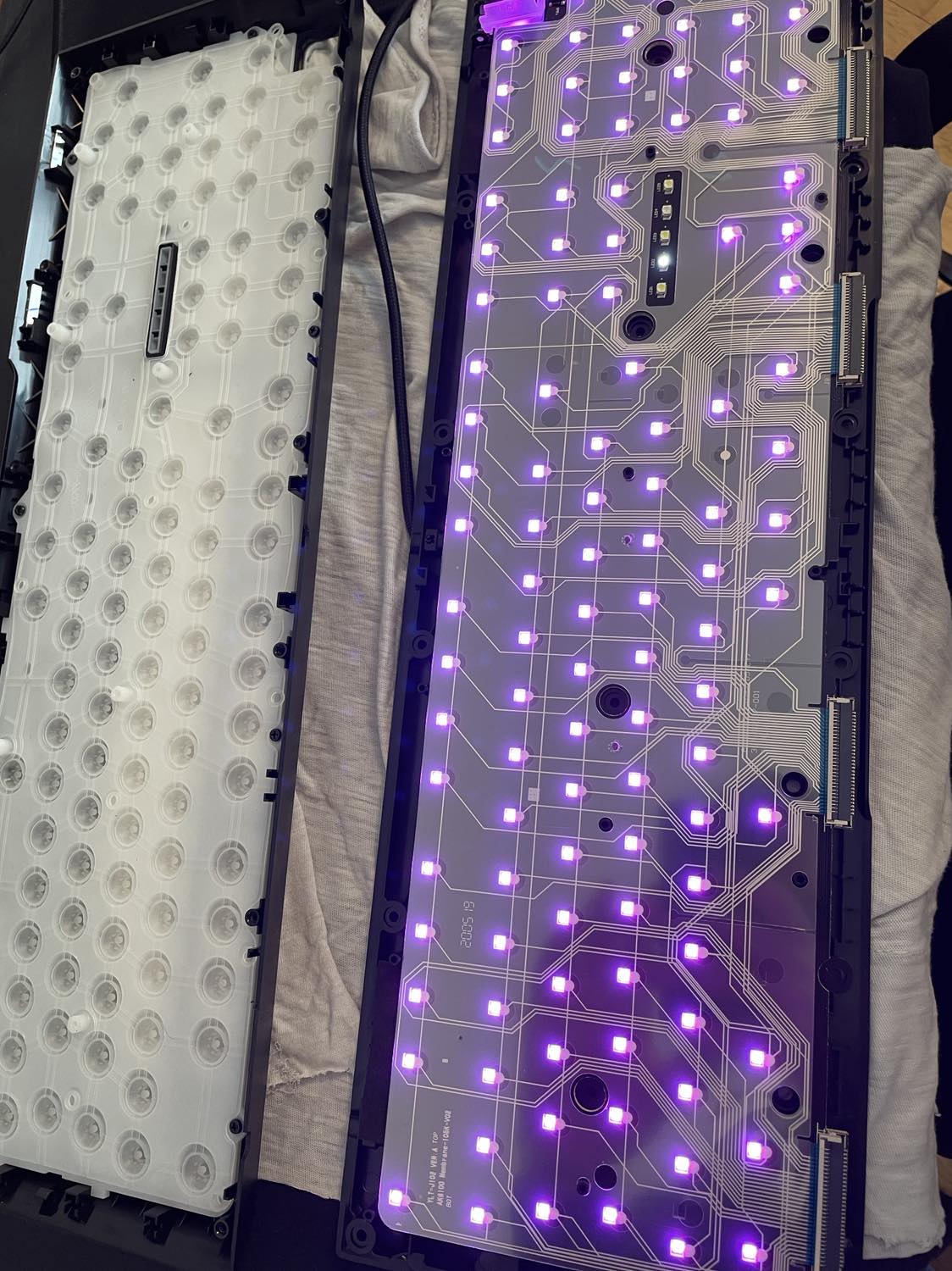 Peut-être qu'il faut regarder les connectiques dedans, à la base de la matrice qui va aux touches