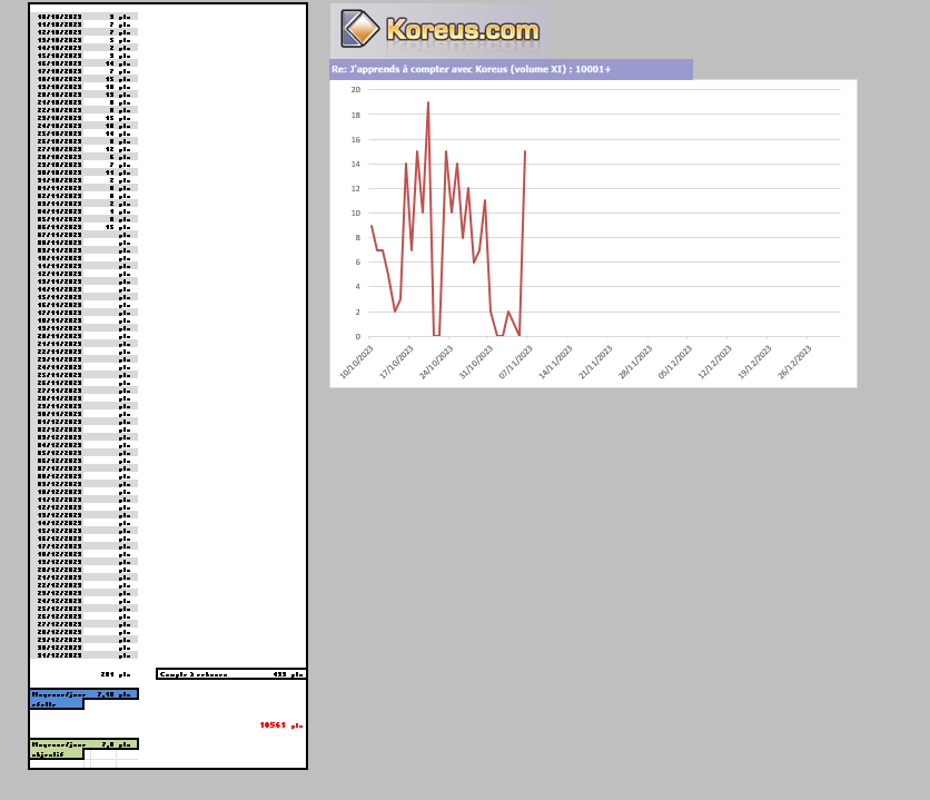 ![]() Edit: j'ai mis à jour les stats à hier soir. Nous sommes légèrement en dessous la moyenne nécessaire pour atteindre notre BUT. 7,18 messages/jour alors qu'il faut que nous soyons à 7,80messages ![]() Rien de dramatique cependant, mais notre vigilance et notre abnégation doivent être de mise.
